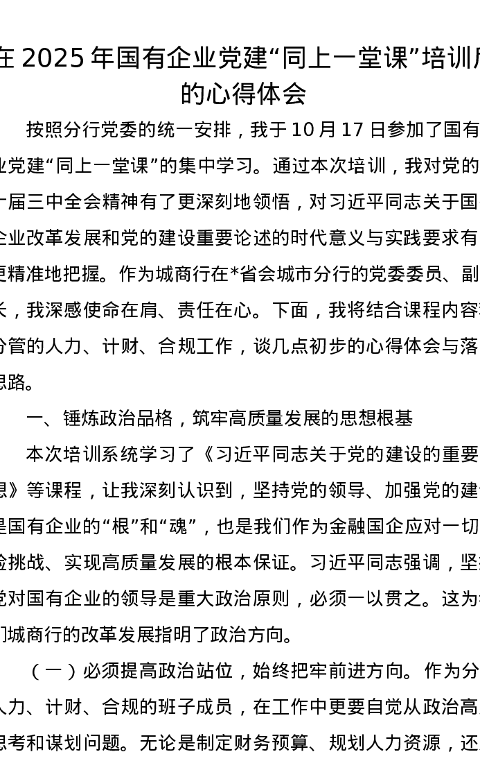 在2025年国有企业党建“同上一堂课”培训后的心得体会
