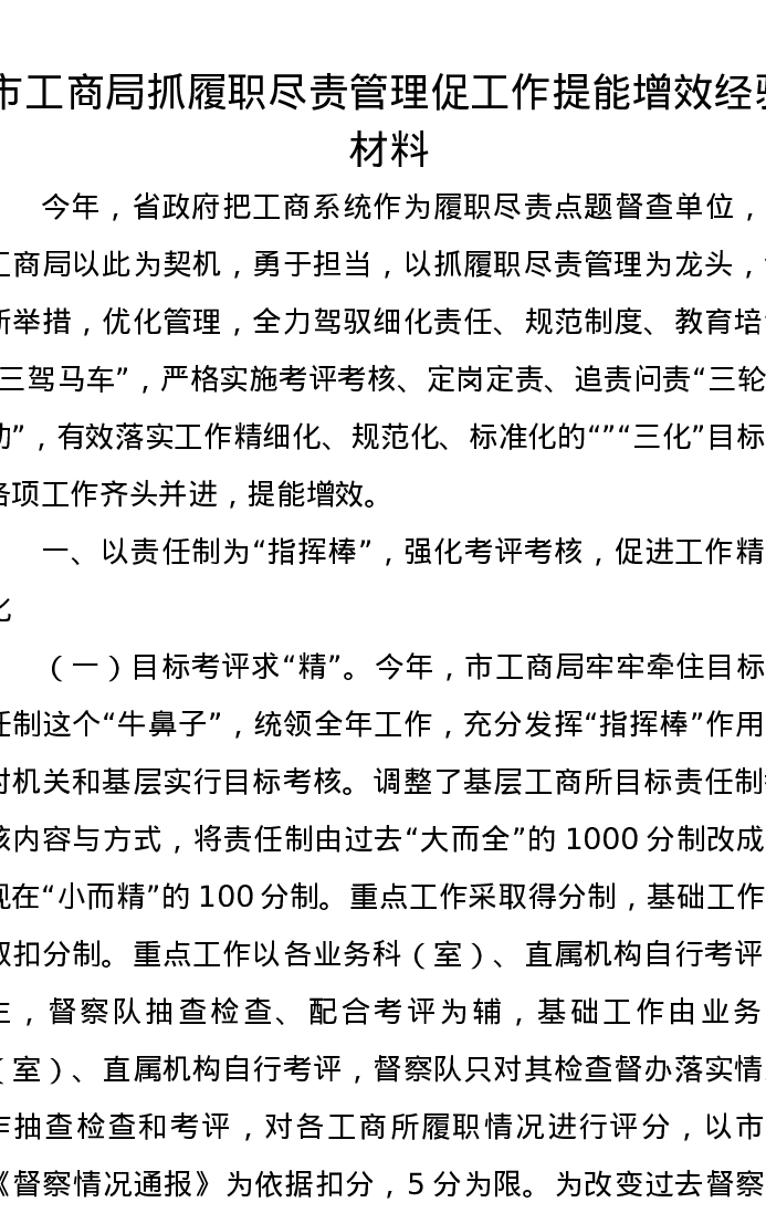 市工商局抓履职尽责管理促工作提能增效经验材料