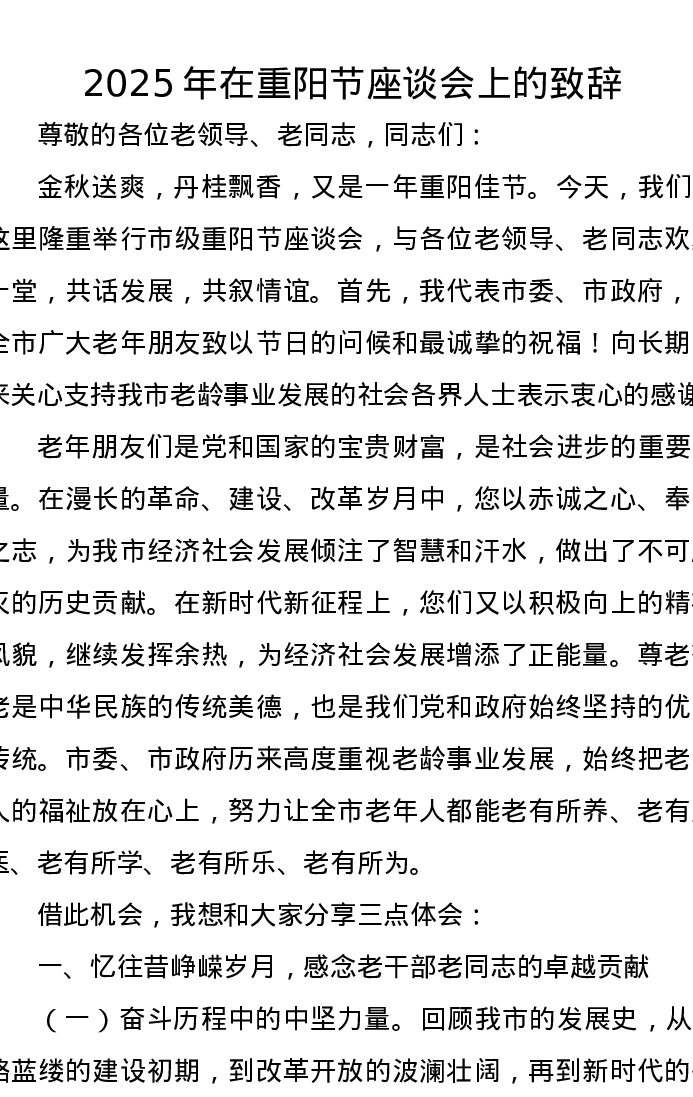 2025年在重阳节座谈会上的致辞