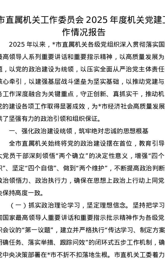 市直属机关工作委员会2025年度机关党建工作情况报告