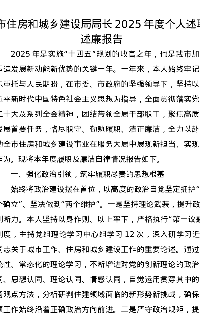 市住房和城乡建设局局长2025年度个人述职述廉报告