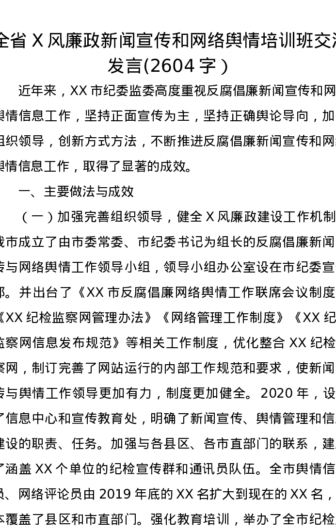 全省党风廉政新闻宣传和网络舆情培训班交流发言(2604字)