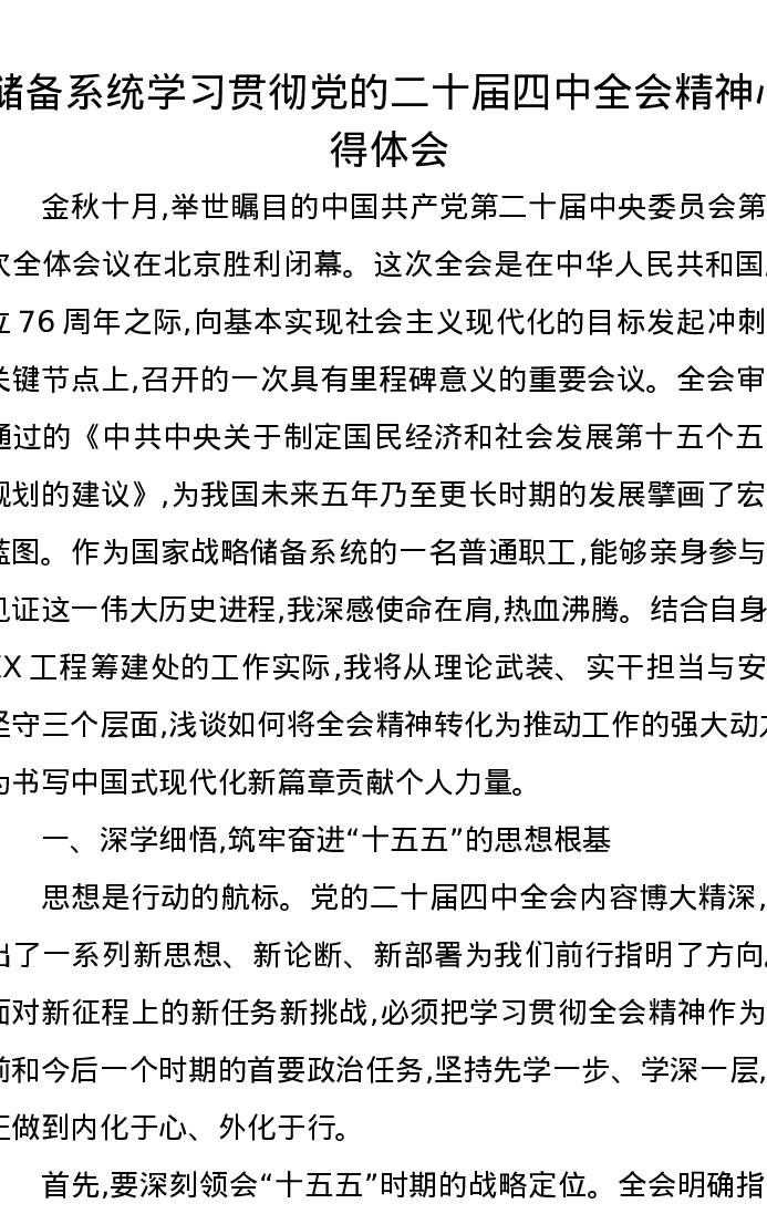 储备系统学习贯彻党的二十届四中全会精神心得体会