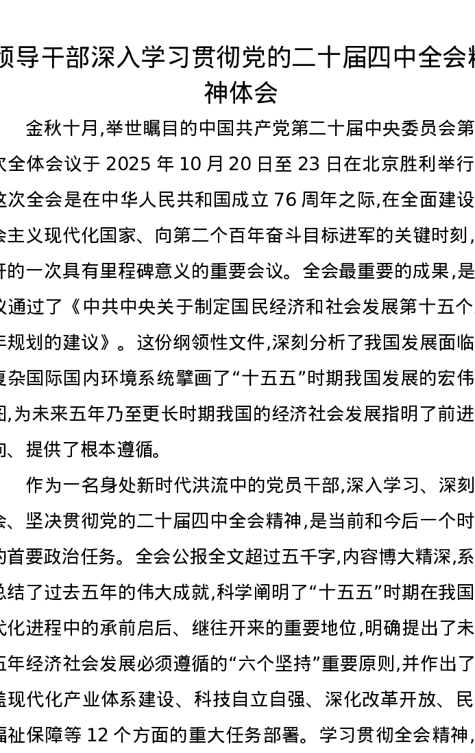 领导干部深入学习贯彻党的二十届四中全会精神体会