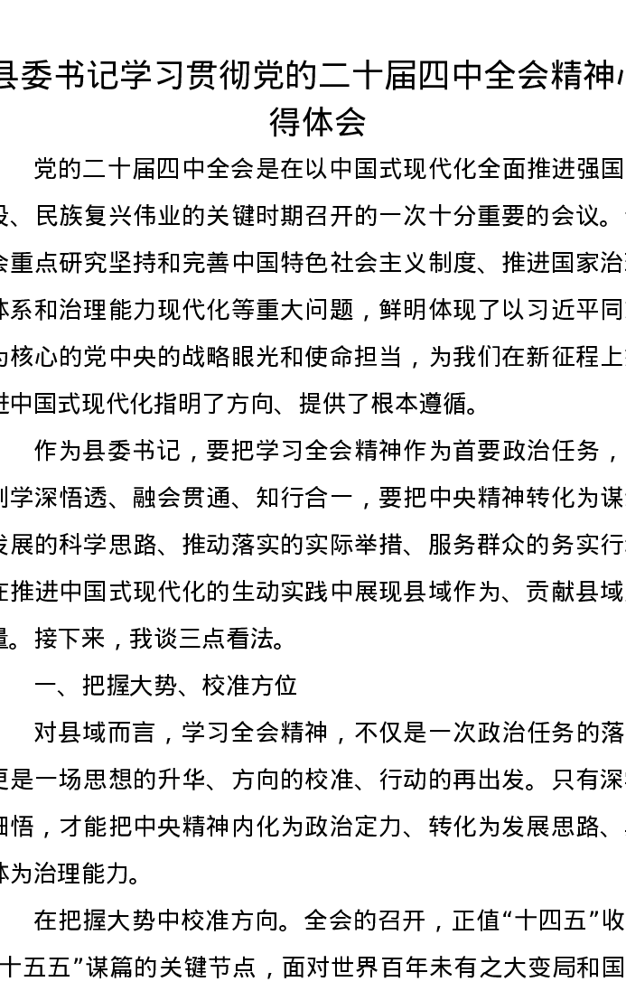 县委书记学习贯彻党的二十届四中全会精神心得体会
