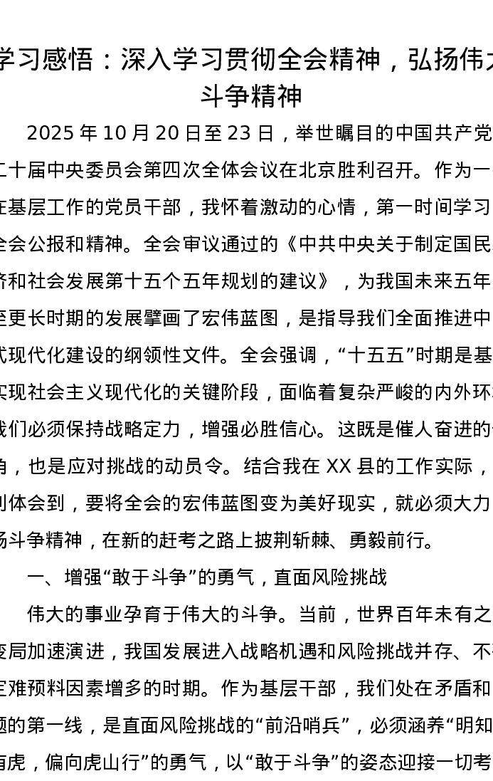 学习感悟:深入学习贯彻四中全会精神,弘扬伟大斗争精神