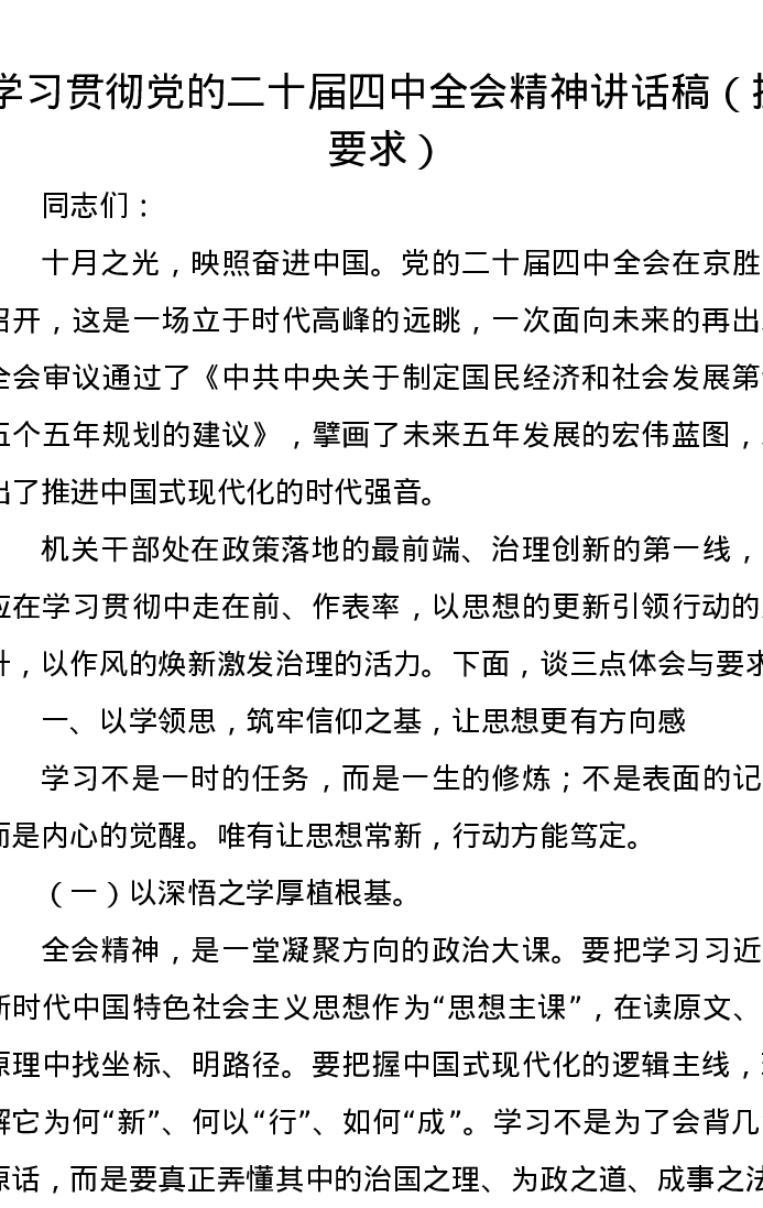学习贯彻党的二十届四中全会精神讲话稿(提要求)