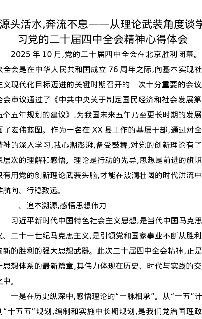 源头活水,奔流不息——从理论武装角度谈学习党的二十届四中全会精神心得体会