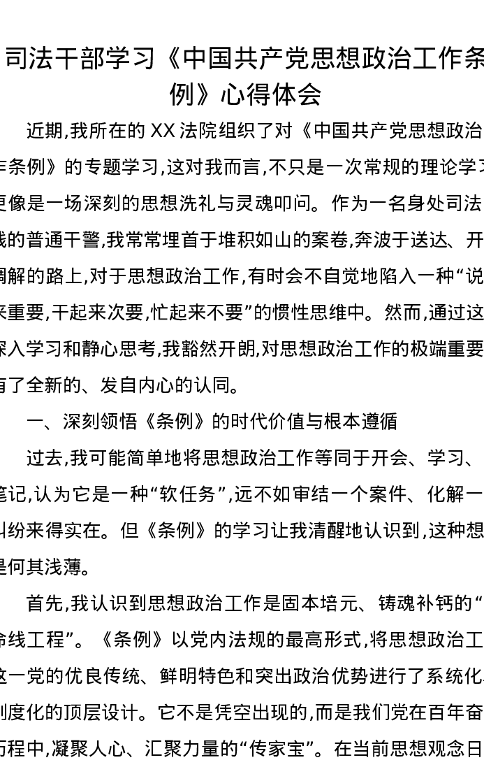 司法干部学习《中国共产党思想政治工作条例》心得体会