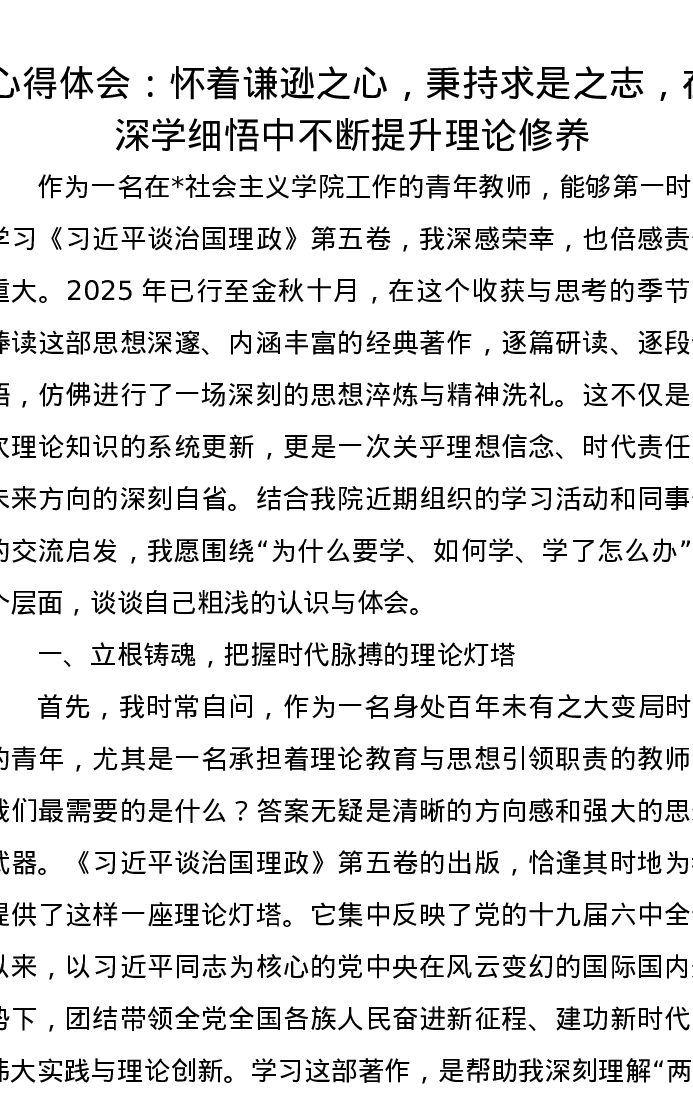 心得体会:怀着谦逊之心,秉持求是之志,在深学细悟中不断提升理论修养