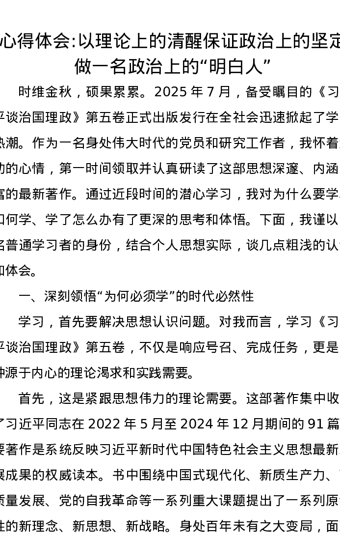 心得体会:以理论上的清醒保证政治上的坚定,做一名政治上的“明白人”