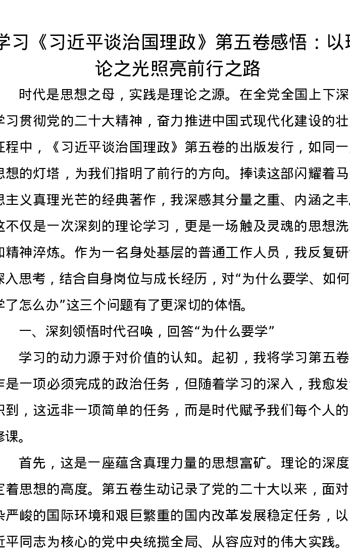 学习《习近平谈治国理政》第五卷心得感悟:以理论之光照亮前行之路
