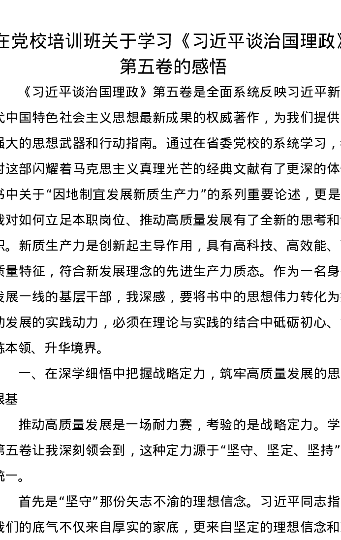 在党校培训班关于学习《习近平谈治国理政》第五卷的心得感悟