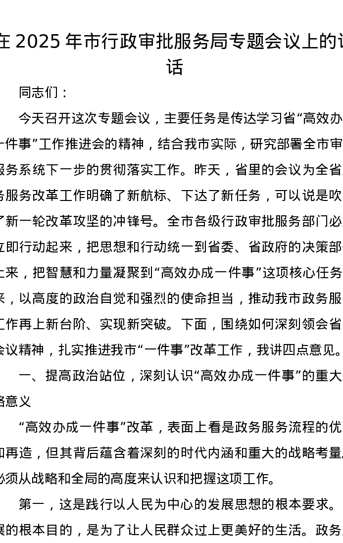 在2025年市行政审批服务局专题会议上的讲话