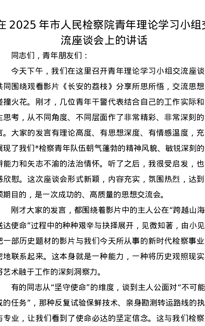 在2025年市人民检察院青年理论学习小组交流座谈会上的讲话