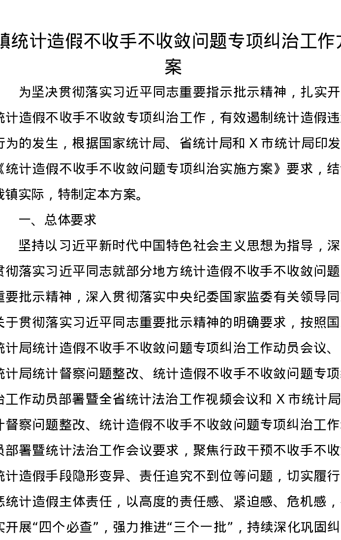 镇统计造假不收手不收敛问题专项纠治工作方案