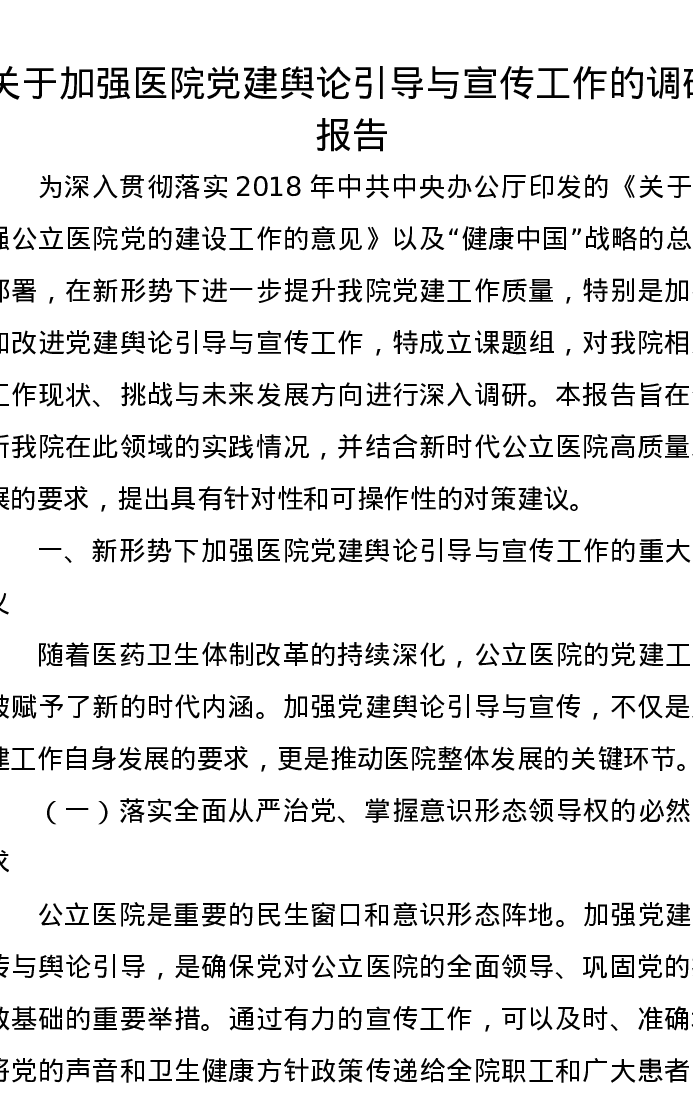 关于加强医院党建舆论引导与宣传工作的调研报告