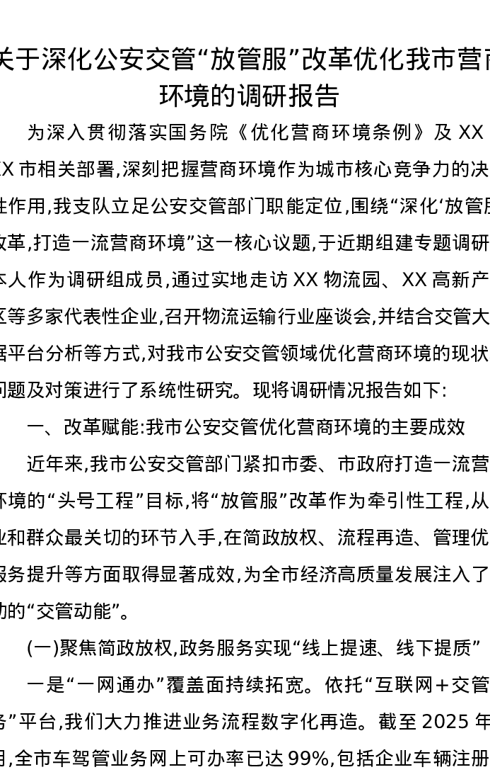 关于深化公安交管“放管服”改革优化我市营商环境的调研报告