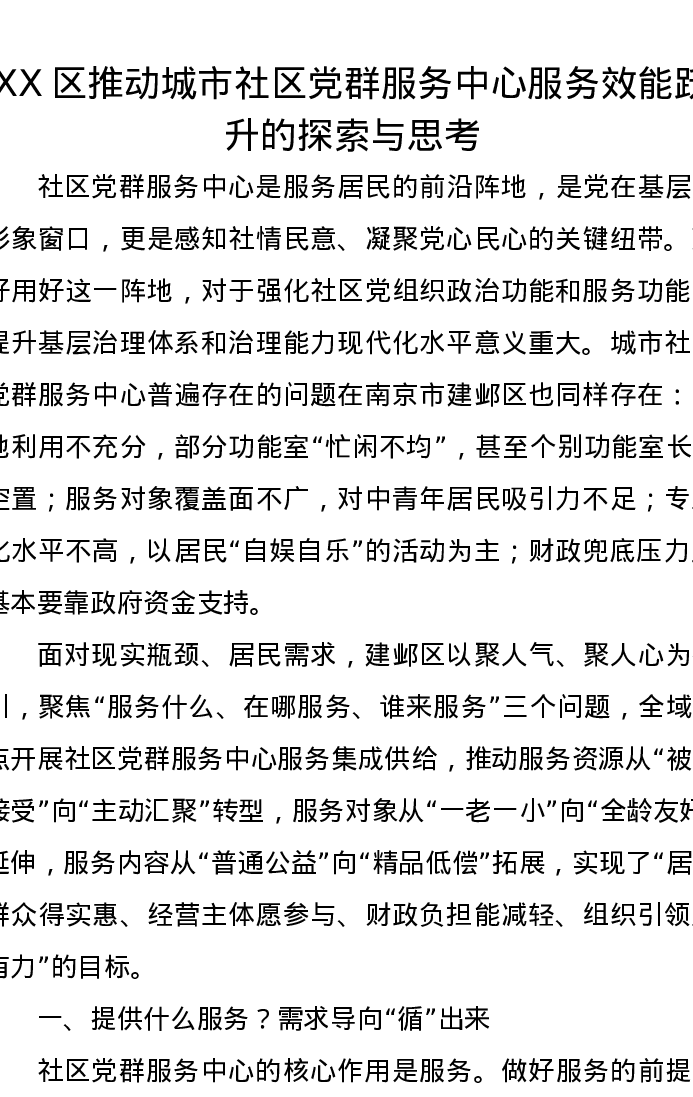 调研报告:XX区推动城市社区党群服务中心服务效能跃升的探索与思考