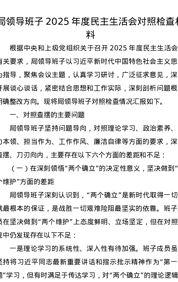 局领导班子2025年度xxxxx对照检查材料