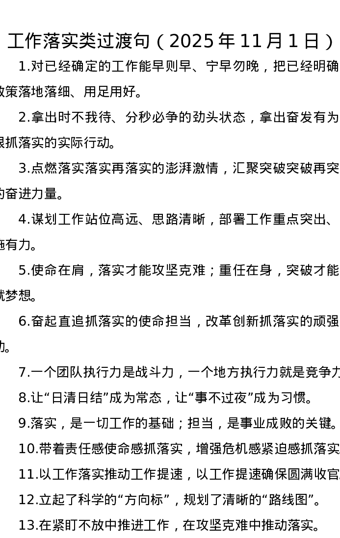 工作落实类过渡句(2025年11月1日)