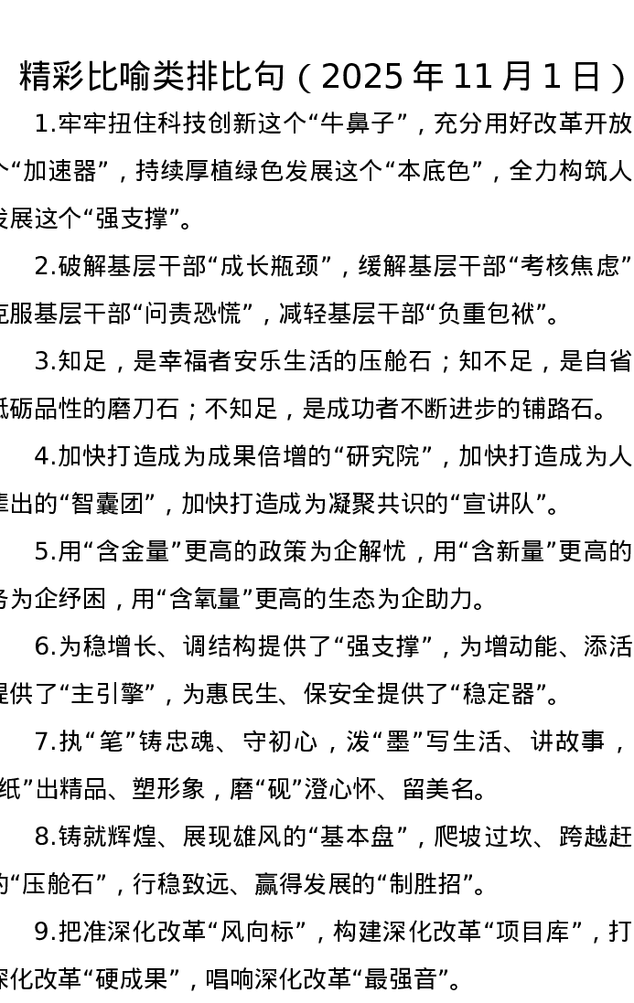 精彩比喻类排比句(2025年11月1日)