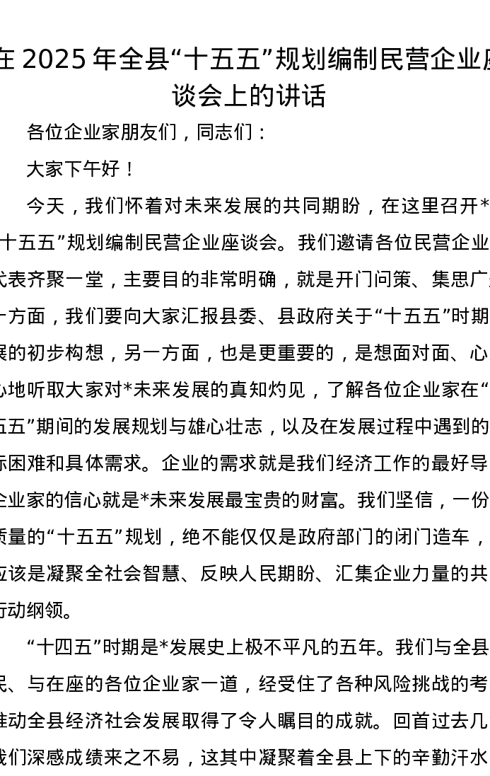 在2025年全县“十五五”规划编制民营企业座谈会上的讲话