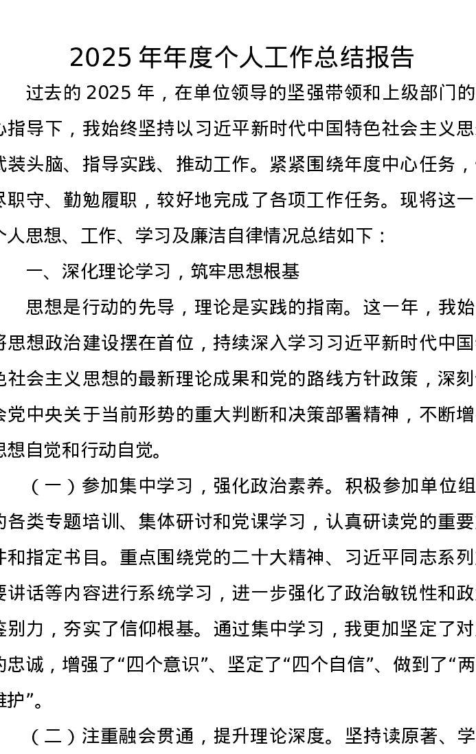 2025年年度个人工作总结报告