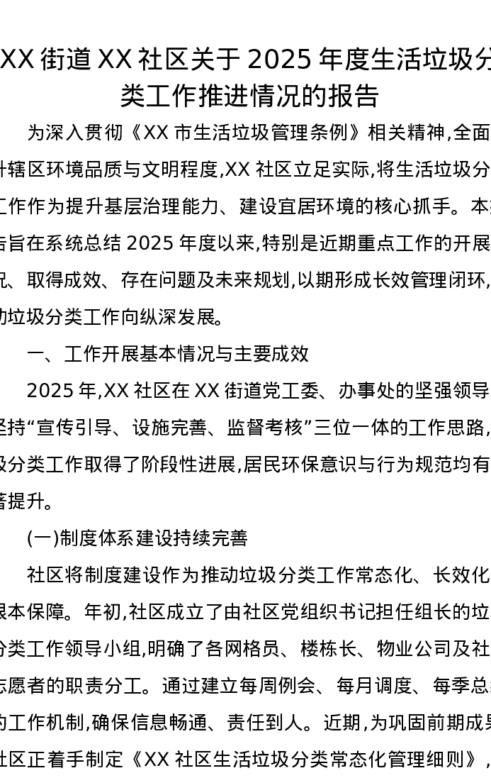 XX街道XX社区关于2025年度生活垃圾分类工作推进情况的报告