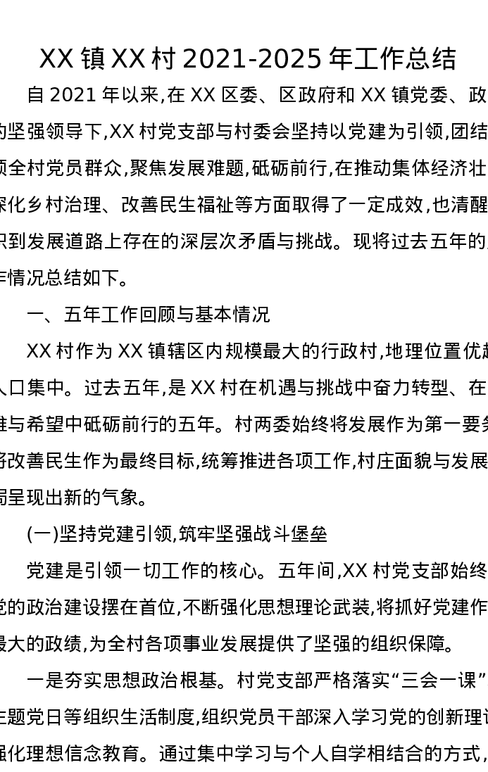 XX镇XX村2021-2025年工作总结