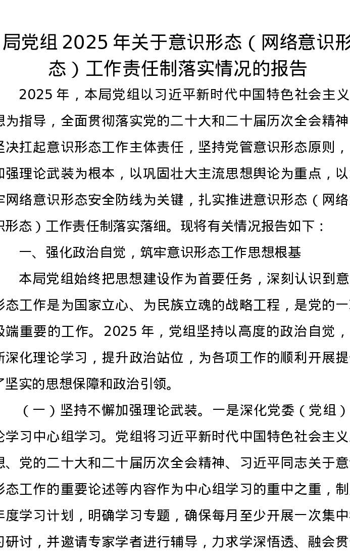 局党组2025年关于意识形态(网络意识形态)工作责任制落实情况的报告