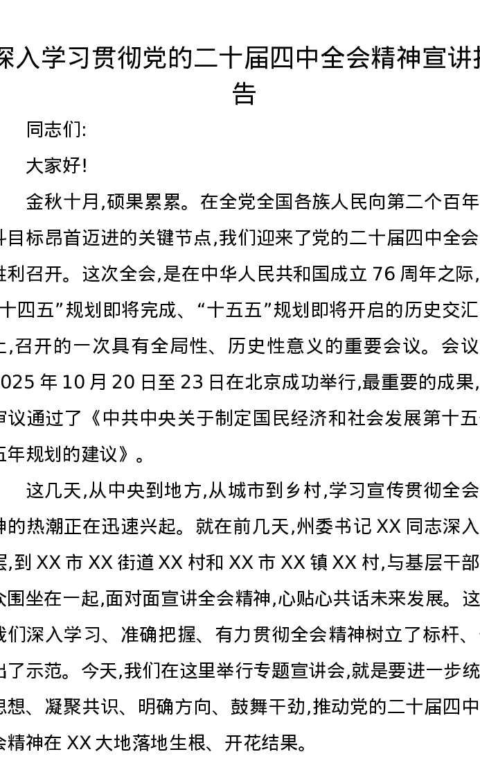 深入学习贯彻党的二十届四中全会精神宣讲报告
