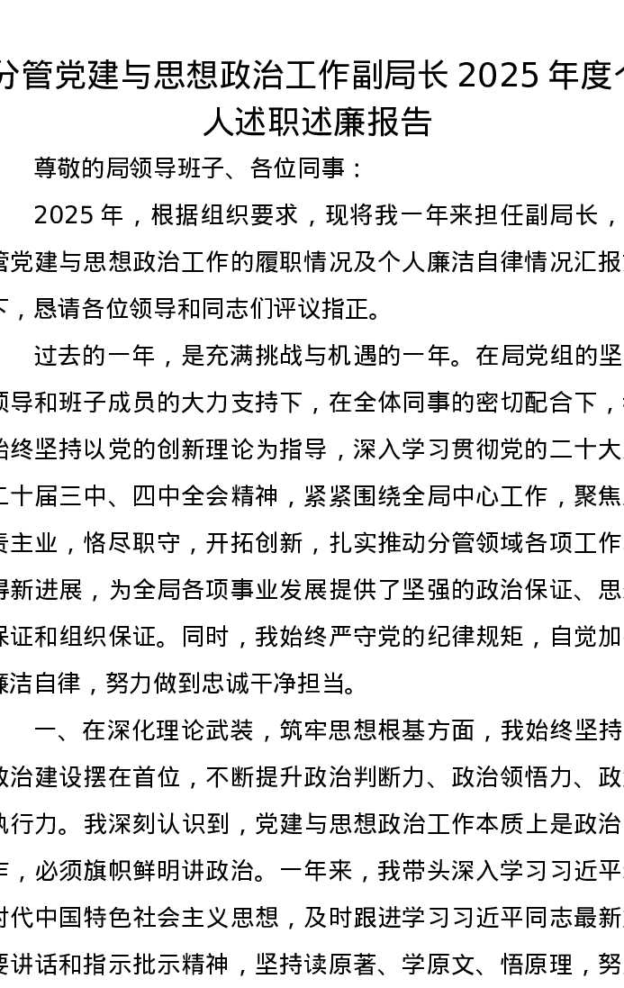 分管党建与思想政治工作副局长2025年度个人述职述廉报告