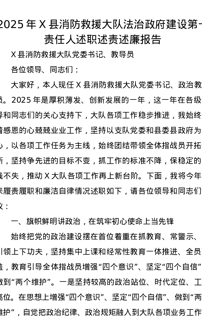 县消防救援大队党委书记2025年度述职述责述廉报告
