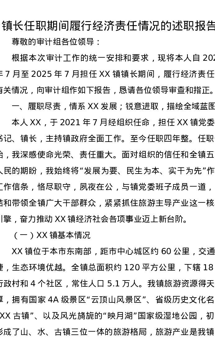 镇长任职期间履行经济责任情况的述职报告