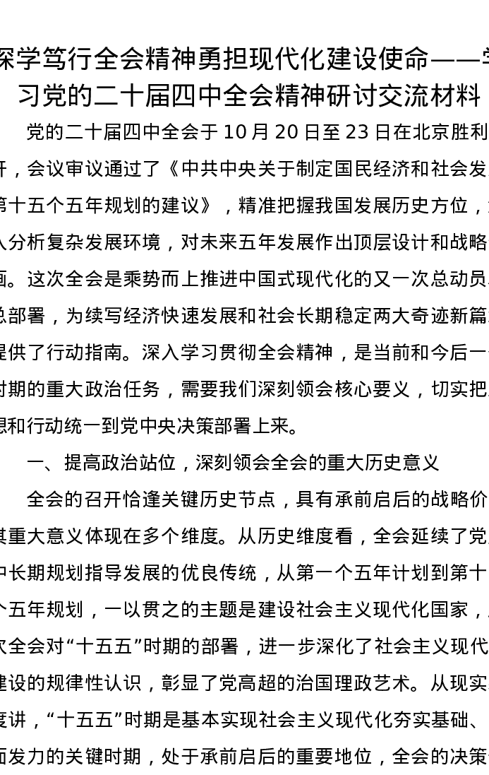 深学笃行全会精神勇担现代化建设使命——学习党的二十届四中全会精神研讨交流发言材料