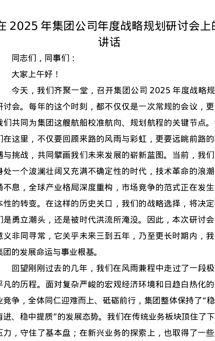 在2025年集团公司年度战略规划研讨会上的讲话