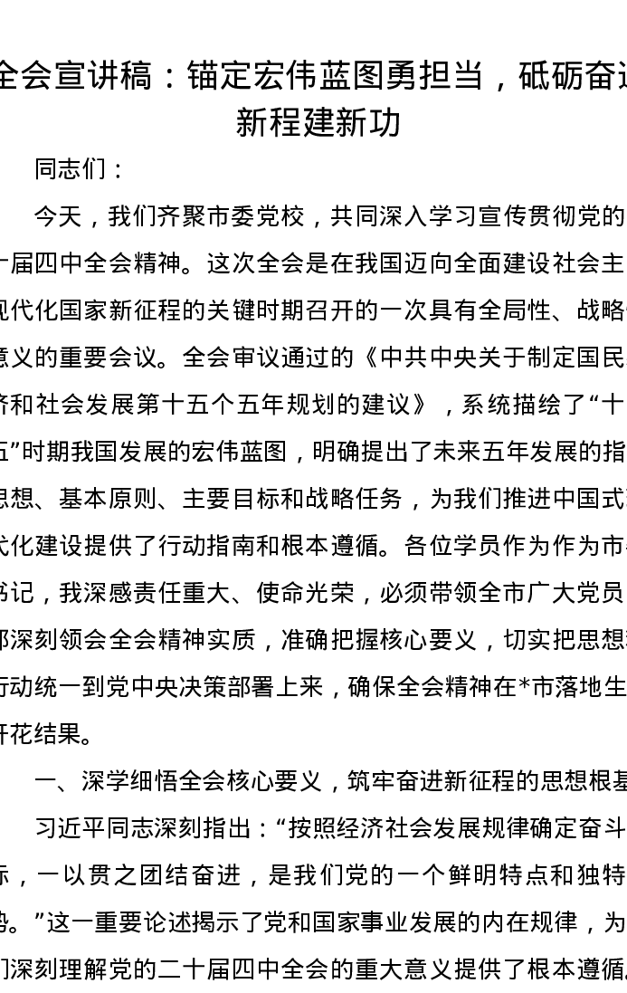 二十届四中全会宣讲稿:锚定宏伟蓝图勇担当,砥砺奋进新程建新功