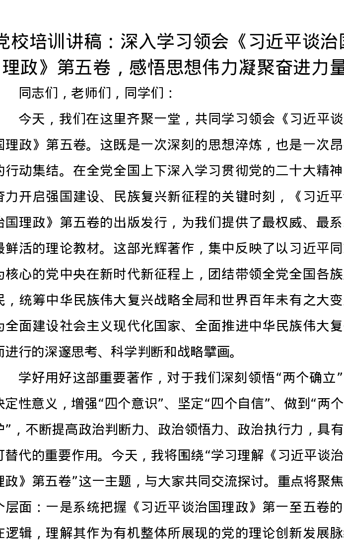 党校培训讲稿:深入学习领会《习近平谈治国理政》第五卷,感悟思想伟力凝聚奋进力量