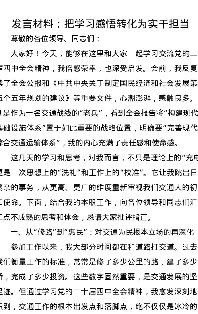发言材料:把学习感悟转化为实干担当