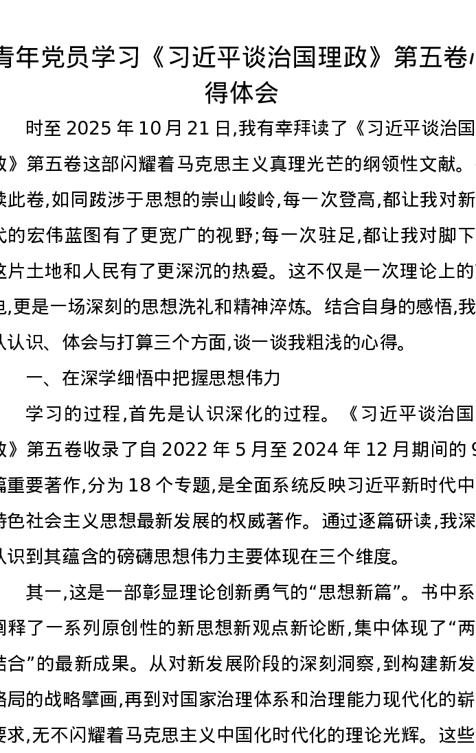 青年党员学习《习近平谈治国理政》第五卷心得体会