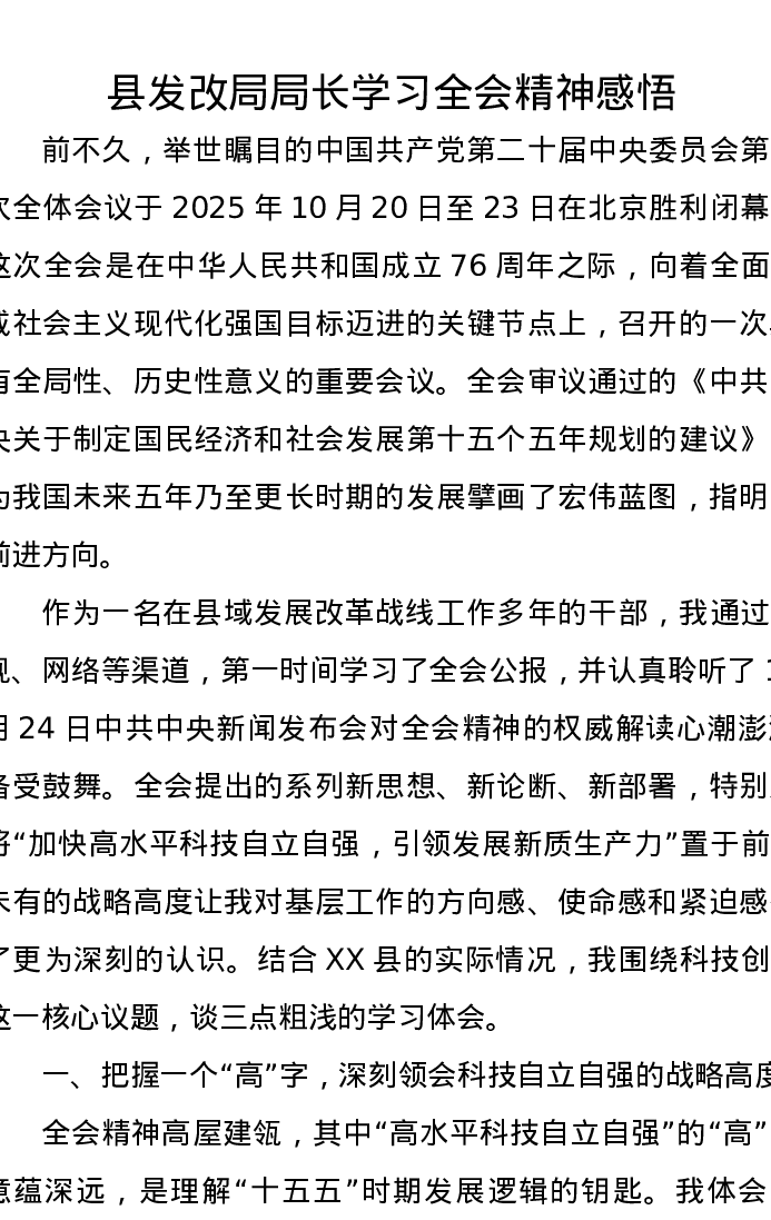 县发改局局长学习二十届四中全会精神感悟心得体会