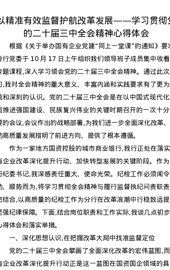 以精准有效监督护航改革发展——学习贯彻党的二十届三中全会精神心得体会