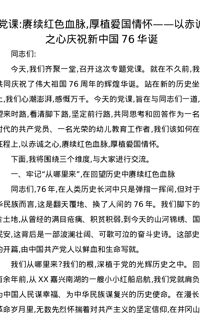 党课赓续红色血脉,厚植爱国情怀——以赤诚之心庆祝新中国76华诞