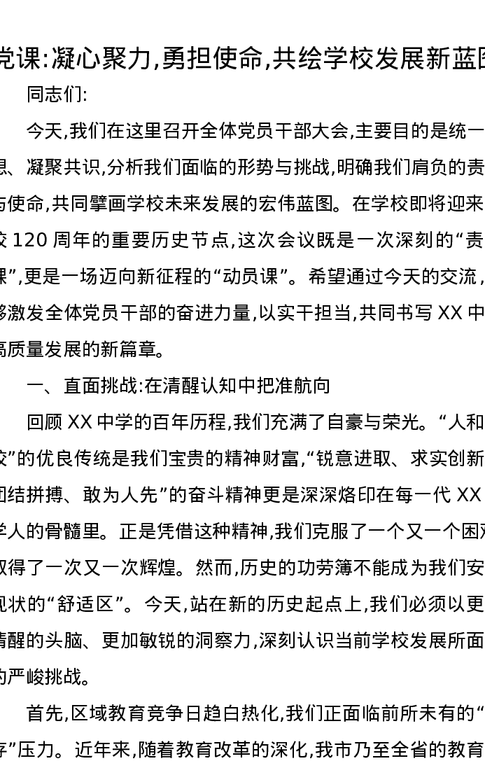 党课讲稿:凝心聚力,勇担使命,共绘学校发展新蓝图