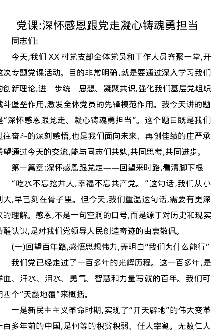 党课讲稿:深怀感恩跟党走凝心铸魂勇担当