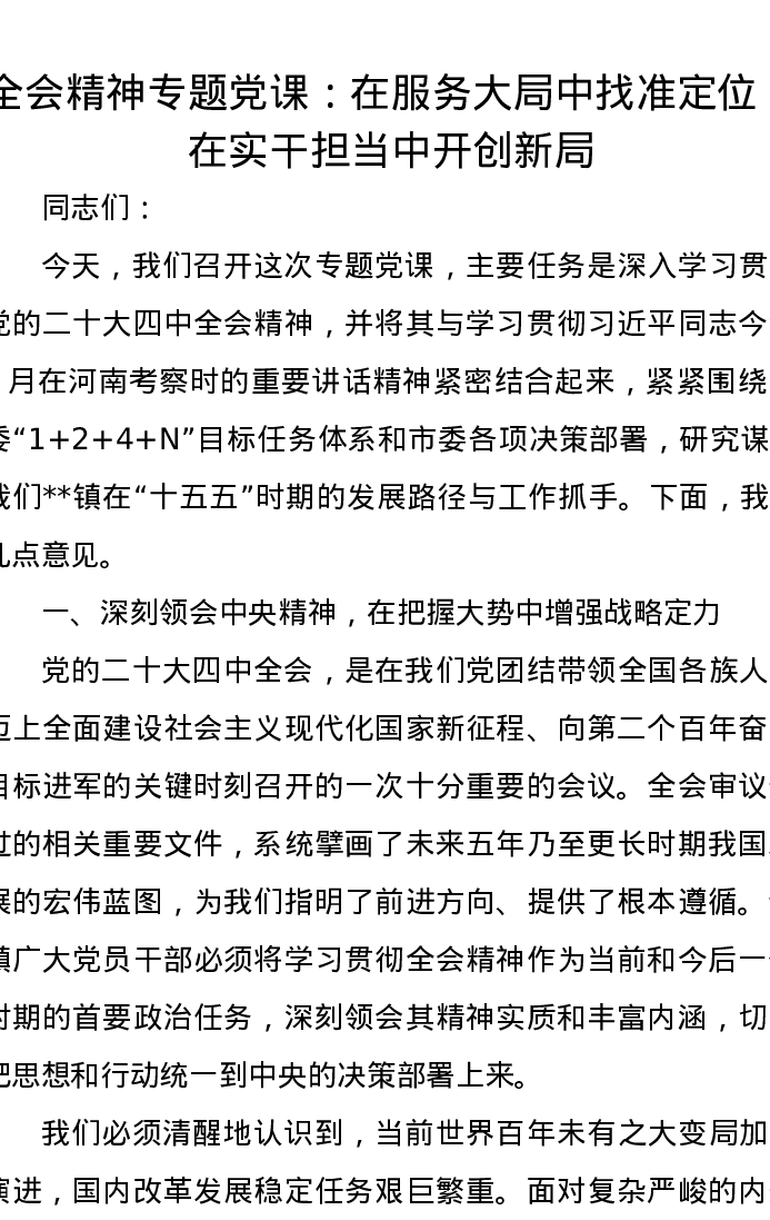 二十届四中全会精神专题党课讲稿:在服务大局中找准定位,在实干担当中开创新局