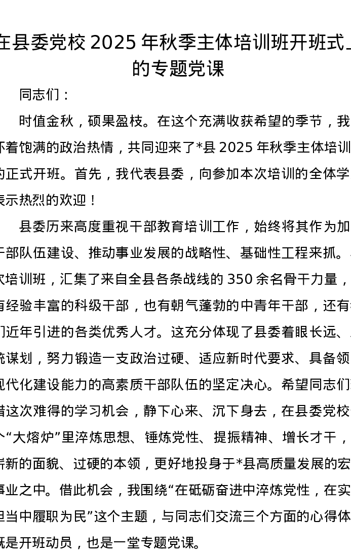 在县委党校2025年秋季主体培训班开班式上的专题党课