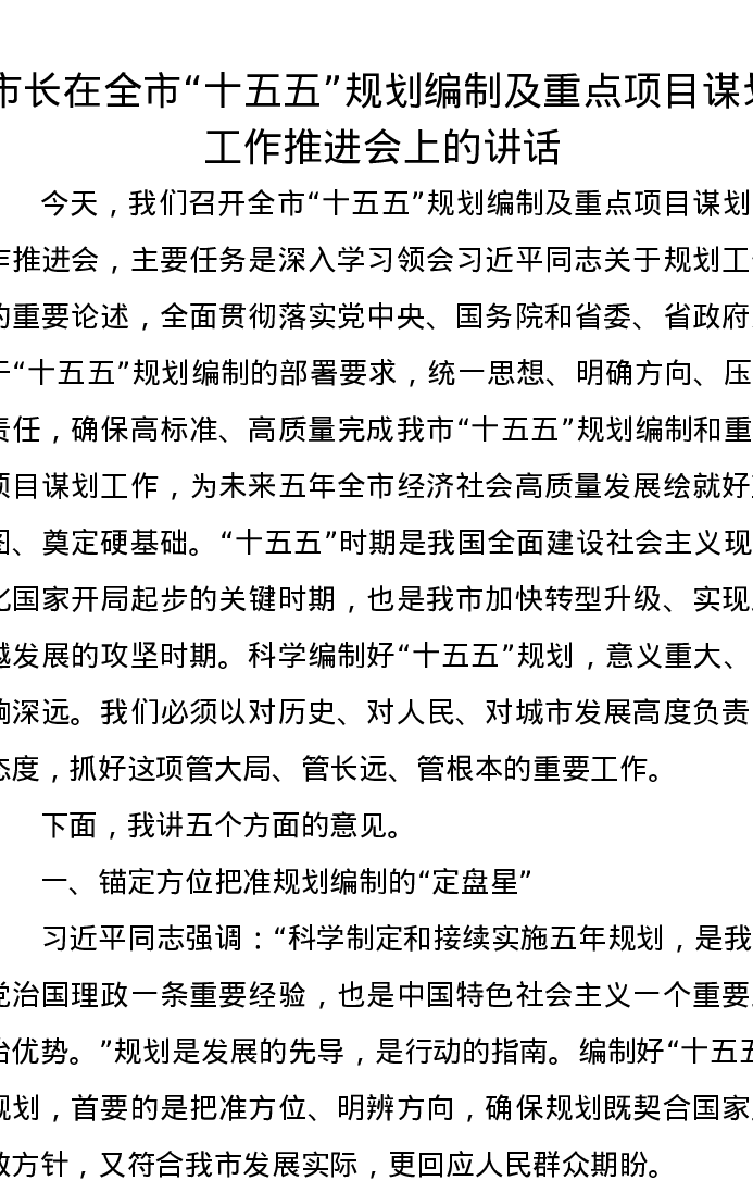 市长在全市“十五五”规划编制及重点项目谋划工作推进会上的讲话