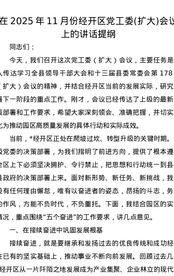 在2025年11月份经开区党工委(扩大)会议上的讲话提纲